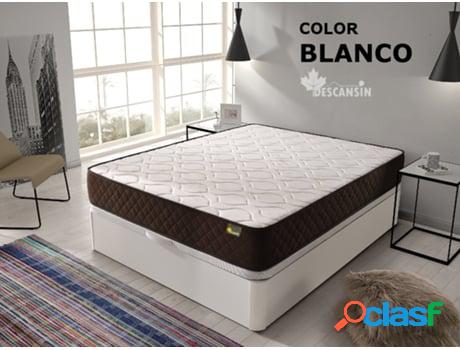 Pack Colchon Canape Abatible Descansin 160 x 200 Blanco Maxima Comodidad Gran Almacenaje pstrongPack Colchón Canapé/strong/ppConoce todas las prestaciones de nuestro colchón:br /- Transpirabilidad: su estructura microcelular aporta una transpiración máxima y renovación del aire constante. br /- Versatilidad: colchón pensado para todos los públicos: solteros que quieren disfrutar de un plácido descanso y parejas a las que les gusta la independencia de lechos gracias a su tejido, que evita que notes los movimientos de tu acompañante en la cama.br /- Resistencia al hundimiento: incluimos un Núcleo HR de larga duración y antideforme por uso normal. Cuenta con 4 capas que evitan la sudoración y el hundimiento. Además, hemos eliminado los muelles para obtener un colchón supersilencioso.br /- Suavidad y adaptabilidad: cuenta con una capa de gel que aporta un tacto suave y una capa superficial de Strech Silver que favorece la adaptabilidad de tu cuerpo al colchón.br /- A prueba de bacterias: evita o reduce los problemas con bacterias gracias a sus tejidos especiales antiácaros, antibacterias y antimoho. Cuenta con una capa de tejido antisudoración de Vis-Gel de alta densidad (3 cm)./ppConoce todas las prestaciones de nuestro canapé:br /- Materiales de calidad: posee tableros de madera de 25 mm de grosor junto a las 4 esquinas de madera de haya macizas muy resistentes. Es abatible, cuenta con un sistema de pistón de gas y no supone ningún esfuerzo abrirlo.br /- Máxima transpiración: cuenta con una tapa tapizada en tejido 3D reforzada con barras de acero longitudinales y multiperforada que otorgan una mayor transpirabilidad. Notarás la ventilación y aireación del canapé con 4 aireadores que evitarán humedades al mismo tiempo que se alarga su vida útil.br /- Mayor resistencia: tendrás unos tableros de madera melaminada de 25 mm de grosor que junto a las 4 esquinas de madera de Haya macizas de alta resistencia podrás mover el canapé fácilmente.br /- Altura y capacidad perfecta: su altura total es de 35 cm y 28 cm de baúl.br /- Disponible en varios colores: lo puedes elegir en cuatro colores diferentes: cerezo, chocolate, beis y blanco.br /- Fácil montaje: el envío incluye piezas y un libro de instrucciones que te facilitará al máximo su montaje./p