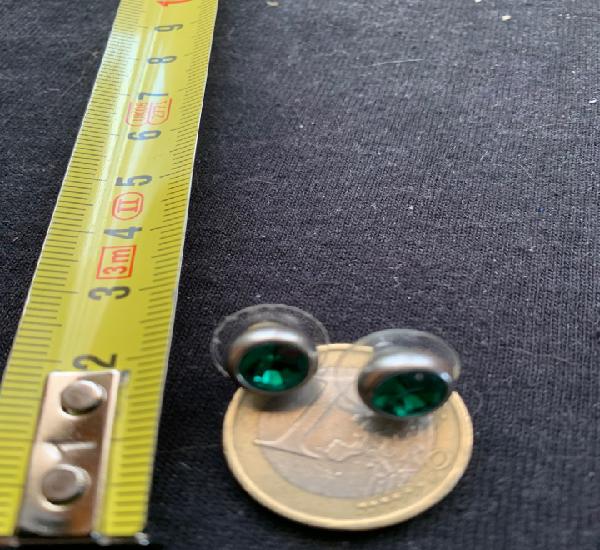 Pendientes de plata con circonita verde esmeralda y strass. Cierre catalán Pendientes de plata con circonita verde esmeralda y strass. Cierre catalán